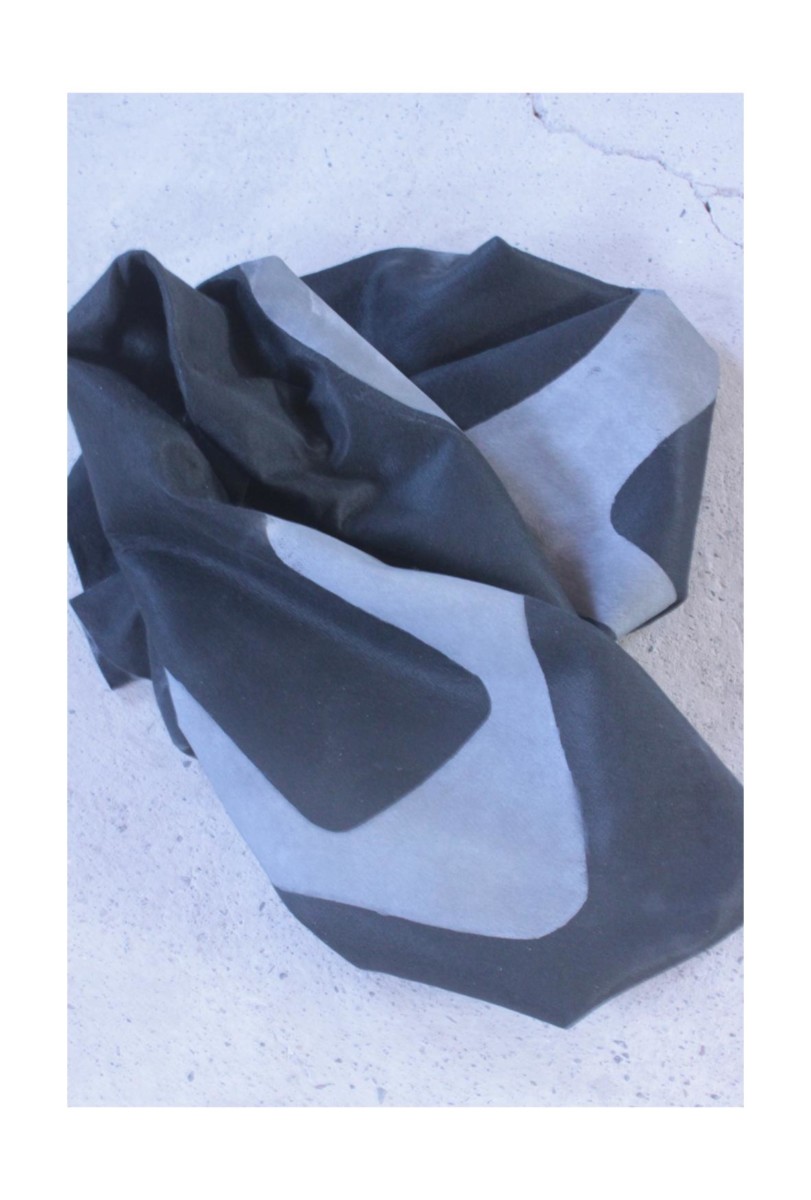 石とフェルト、サテン、ゴムシートなどの素材を組み合わせた大型彫刻シリーズ3点の展示。