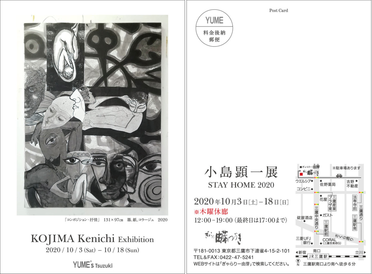 新型コロナウイルスの感染が日本全体に広がり始めた頃にパリに住んでいる友人の画家からパリの都市封鎖下の厳しい生活の様子を知らせて来た。その時は絵描きは人と会えなくても沢山仕事が出来るからいいやねと電話を切ったのだがその後直ぐに日本も緊急事態宣言が出され自分もアトリエに籠る事となった。あの時電話で友人と軽口で言いあったように単純に絵に没頭できるはずもないコロナ禍の世界的歴史的な未曾有な現況の中で自分の生きている社会や人間関係に何が起きているのか考えている。そんな昨今の日々が絵に微妙に反映しているのかもしれない。〈小島顕一〉