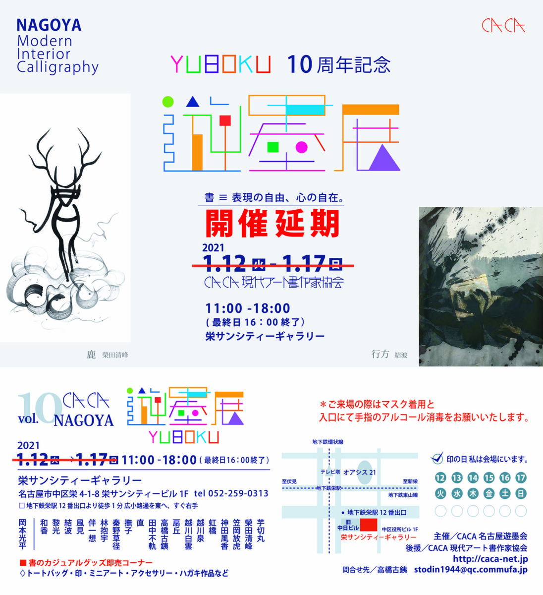 新型コロナウイルス感染拡大による政府の緊急事態宣言発令が確実となりましたので、皆様の安全確保を第一とし、1/12からの遊墨展の開催を延期いたします。