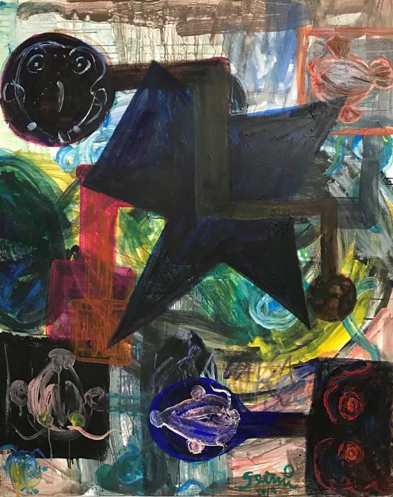 越後妻有アートトリエンナーレ「大地の芸術祭」田島征三「絵本と木の実の美術館」ビオトープの池・田・小川に展開する鉄の巨大オブジェの為の抽象絵画。絵本「つかまえた」・「とわちゃんとシナイモツゴのトトくん」の為の具象絵画。
