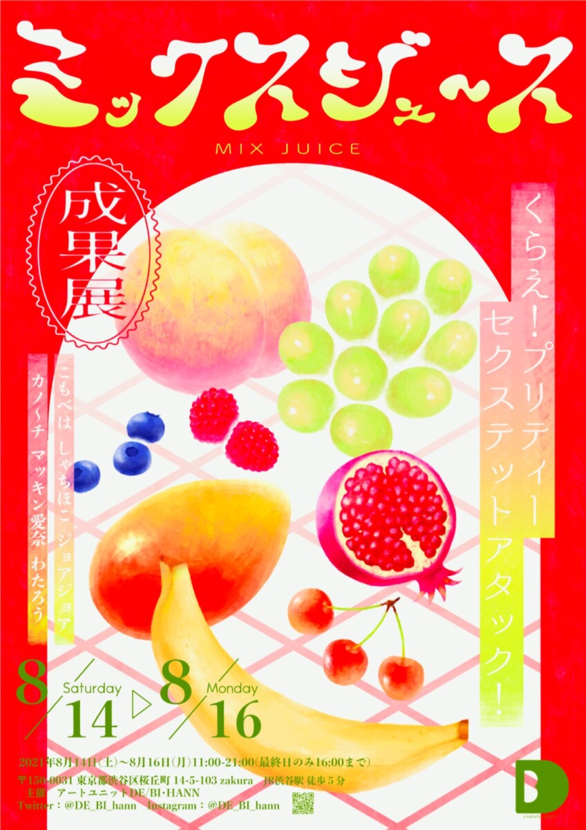 現役美大生6人によるデザイン、ファインの垣根を越えた自由な展覧会です。新型コロナウイルスにより展示の機会を奪われた私達が、それぞれの場所で1年間作り続けた成果を発表します。