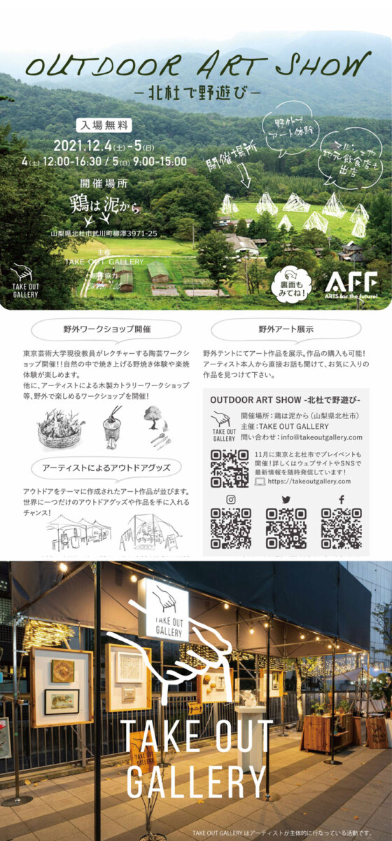 12月4日(土)・5日(日)の『OUTDOOR ART SHOW -北杜で野遊び-』に先駆け、各地でプレイベントを開催!