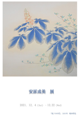日本画制作において、素材を大切にしていると語る安原。ラピスラズリや緑青、金等、1000年以上昔から絵画に使用されていた天然顔料を使用し、素材の美しさを活かすために、あえてシンプルな技法で描いているという作品は静けさの中の森、植物のしっとりとした美しい空気感が見事に表現されています。是非、多くの方にご高覧頂ければ幸いです。
