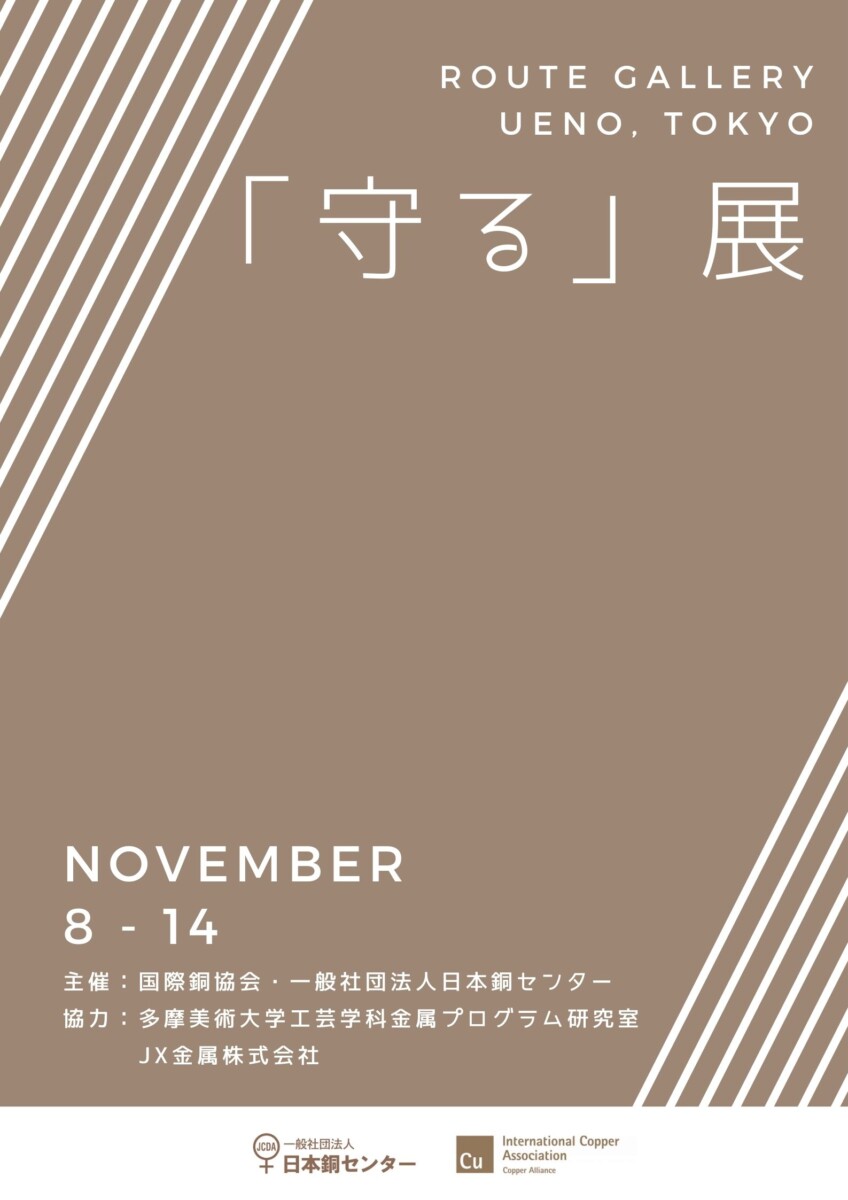 国際銅協会と一般社団法人日本銅センターは、2021年11月8日(月)〜14日(日)にて、多摩美術大学工芸学科金属プログラム研究室と協働し、銅を用いた在学生の工芸作品の展示会「守る」展を、都内のギャラリーROUTE GALLERY(東京都台東区東上野4-14-3)で開催します。