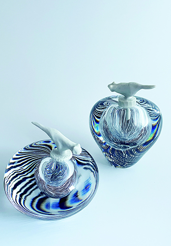 お互いの素材と技法と感覚をドッキングし、ひとつの表現とすることを試みてきた拝。今回は新たに進めてきた、一作品の中に両素材が組み合わされて一体となる表現のシリーズをメインに構成されます。Ceramicとglassの各々が持つ要素を混ぜ合わせ、渾然一体となった新しい融合芸術を是非、ご高覧頂ければ幸いです。