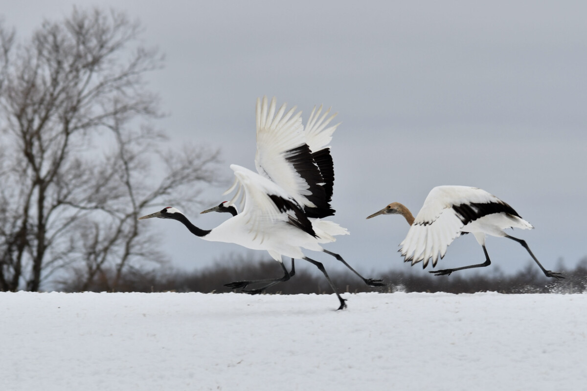 北海道の釧路湿原に生息するタンチョウ鶴の写真展。2022年4月の東京開催に続く大阪巡回展。入場無料。厳冬の雪原、川、山で撮影したタンチョウの素顔と雄姿を約20点で紹介する。夜明け前から日没まで、タンチョウの生態がわかる構成で展示する。