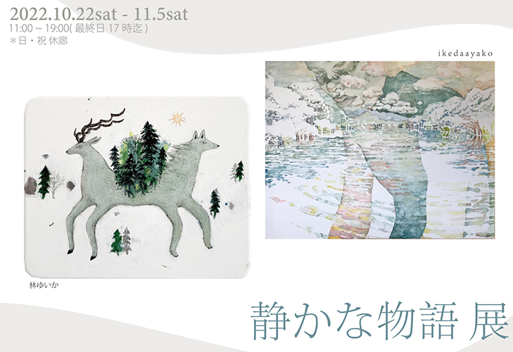 コロナ禍の中、以前より外的刺激が少なくなってしまった昨今。目に見えないものや自然、心に必要な栄養、豊かさを得る大切さを感じる事も増えたのではないでしょうか。物語のようにじっくりとイメージを膨らませてくれる作家2名による個展形式の展覧会を開催致します。