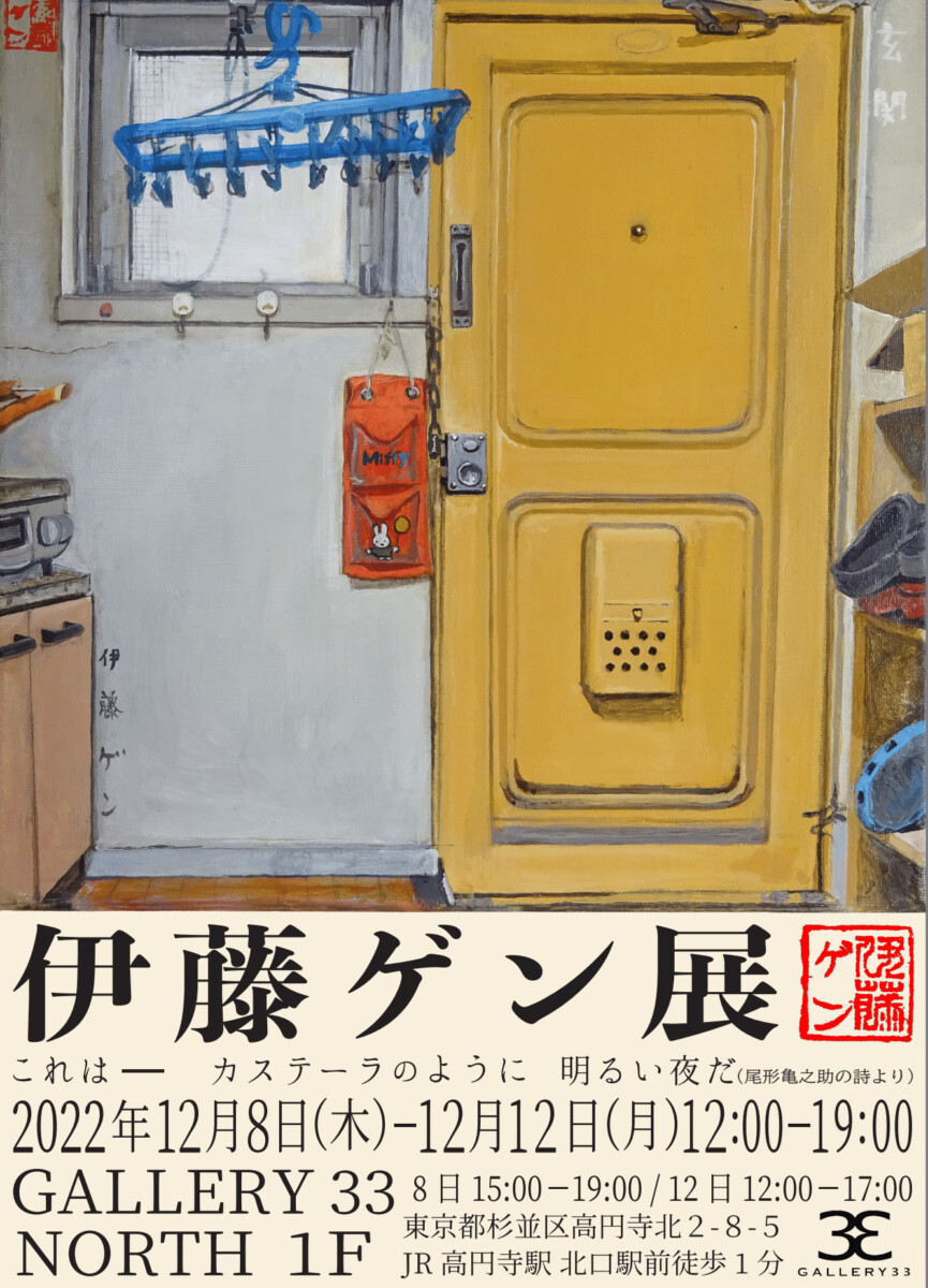 伊藤ゲン展。部屋と食べ物を描いたアクリル画30点。初の個展。明るい夜。