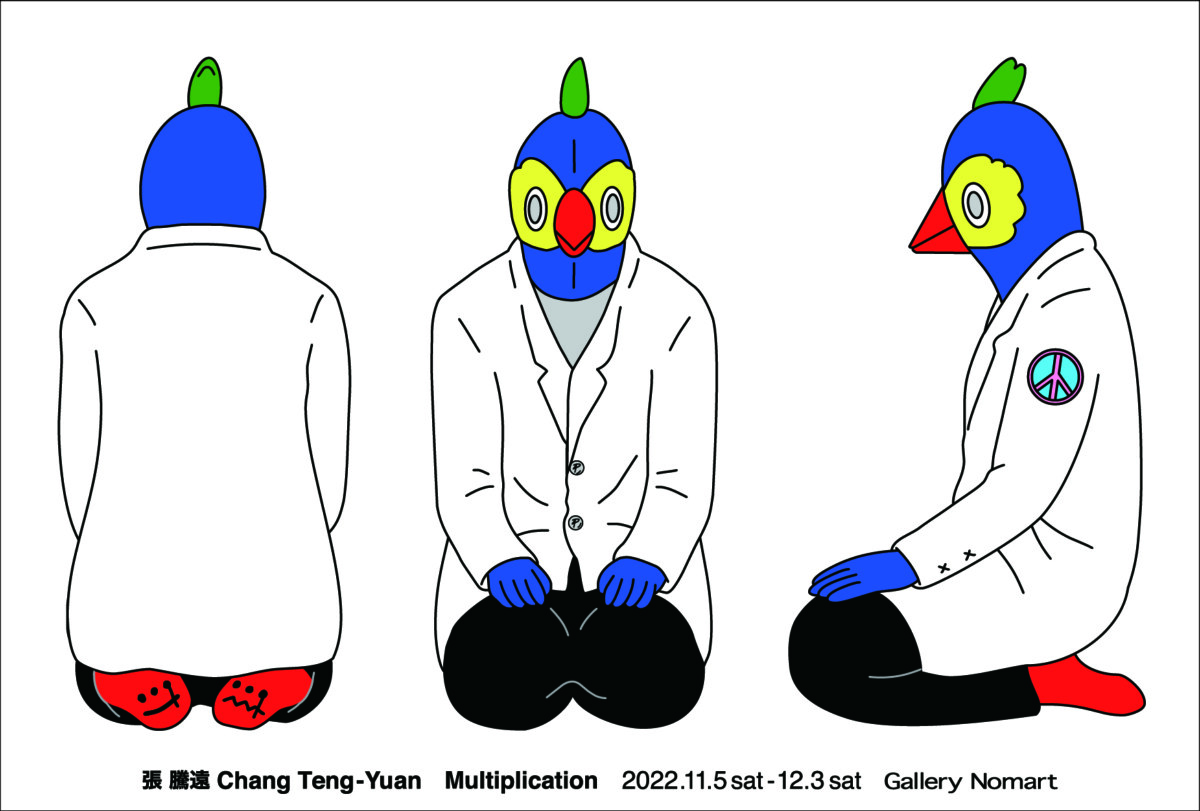 これまでノマルとChangは、コラボレーションによって作品を発表してきました。今展でノマルが提案したタイトルは「Multiplication」ー“増殖”。4年ぶりとなる来日で、Changは美術史をオマージュした巨大なウォールペインティングに挑戦。さらにそれが版画となって増殖します。調査員であるパロットマン自身も、大量のソフビ人形として出現し、圧巻の空間を作り上げます。