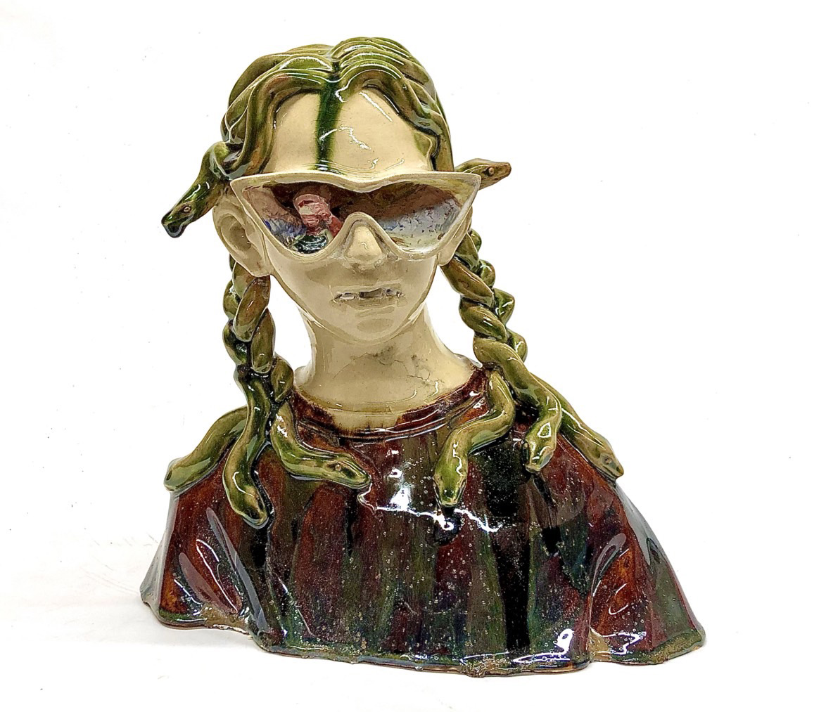 陶やテラコッタを主な素材として用い、実体と表層、意識と無意識など相対する2つの価値観に着目し、人間が誰しも抱える矛盾やズレを普遍的な人体というモチーフに落とし込み、作品を制作する額賀苑子。