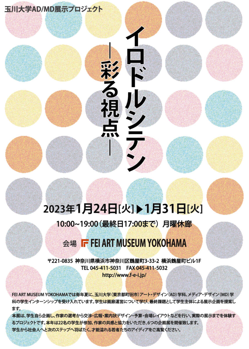 このたびFEI ART MUSEUM YOKOHAMAでは「玉川大学AD/MD展示プロジェクト『イロドルシテン-彩る視点-』」を開催致します。