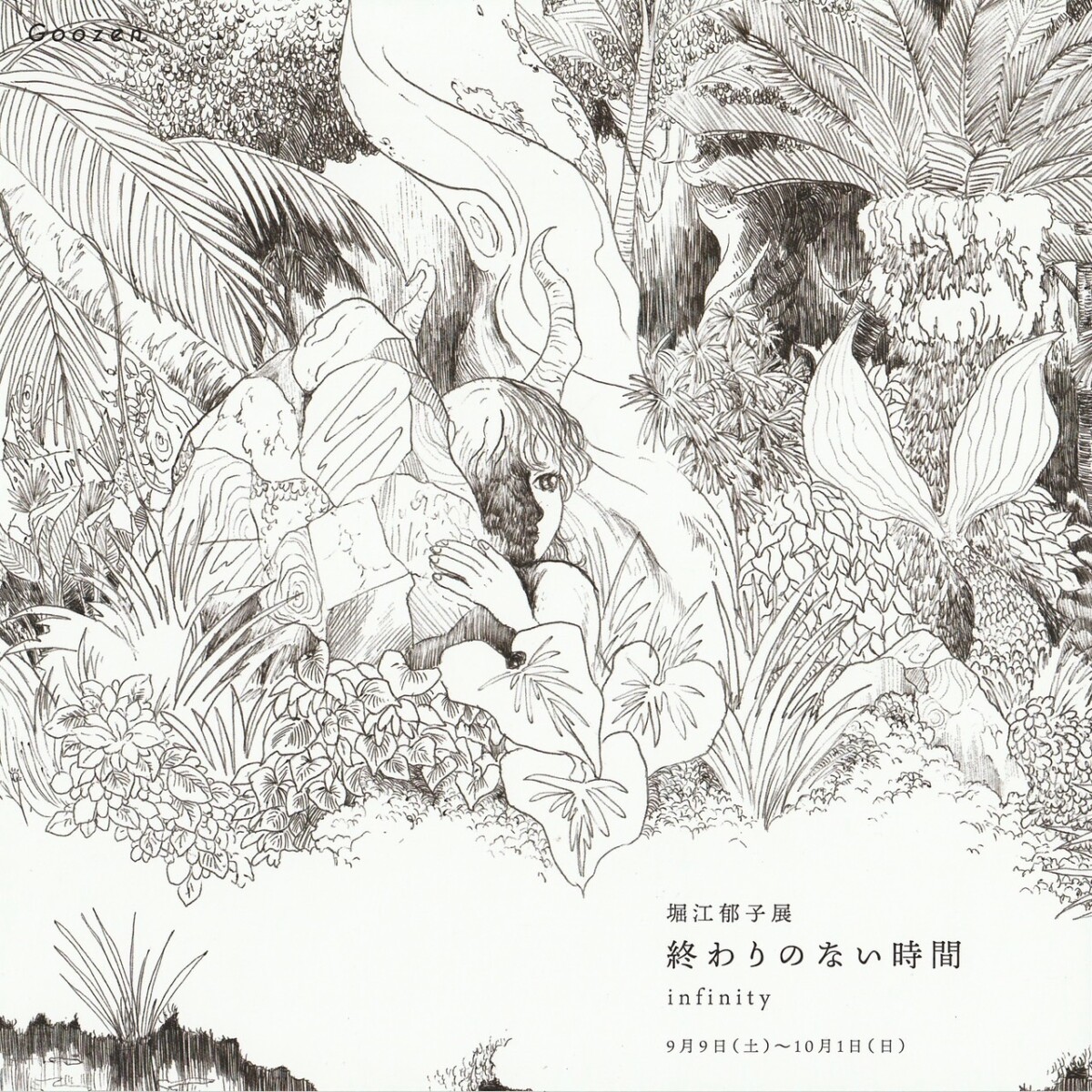 新作アニメーションと、絵画で構成された展示は、約1か月、横浜・弘明寺(ぐみょうじ)のギャラリーで開催されます。ペン画を中心とした作者独自の世界観、今回のテーマは「終わりのない時間-infinity-」です。短編アニメーションに潜むものが、展示される絵画とどう関わるのか。高く広がる秋空の元、ギャラリーの中で木漏れ日のようにきらめく堀江郁子の世界、「終わりのない時間」でお会いしましょう。お待ちしております。