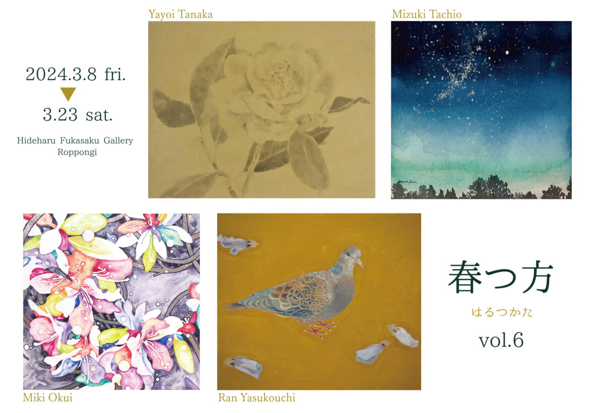 このたび、Hideharu Fukasaku Gallery Roppongiでは「春」をテーマにした作品展「春つ方(はるつかた)」を開催致します。2019年よりスタート、毎年ご好評をいただいているグループ展示の第6回展です。本展は、アートで一足早く鑑賞者に春をプレゼントしたいという思いから企画致しました。