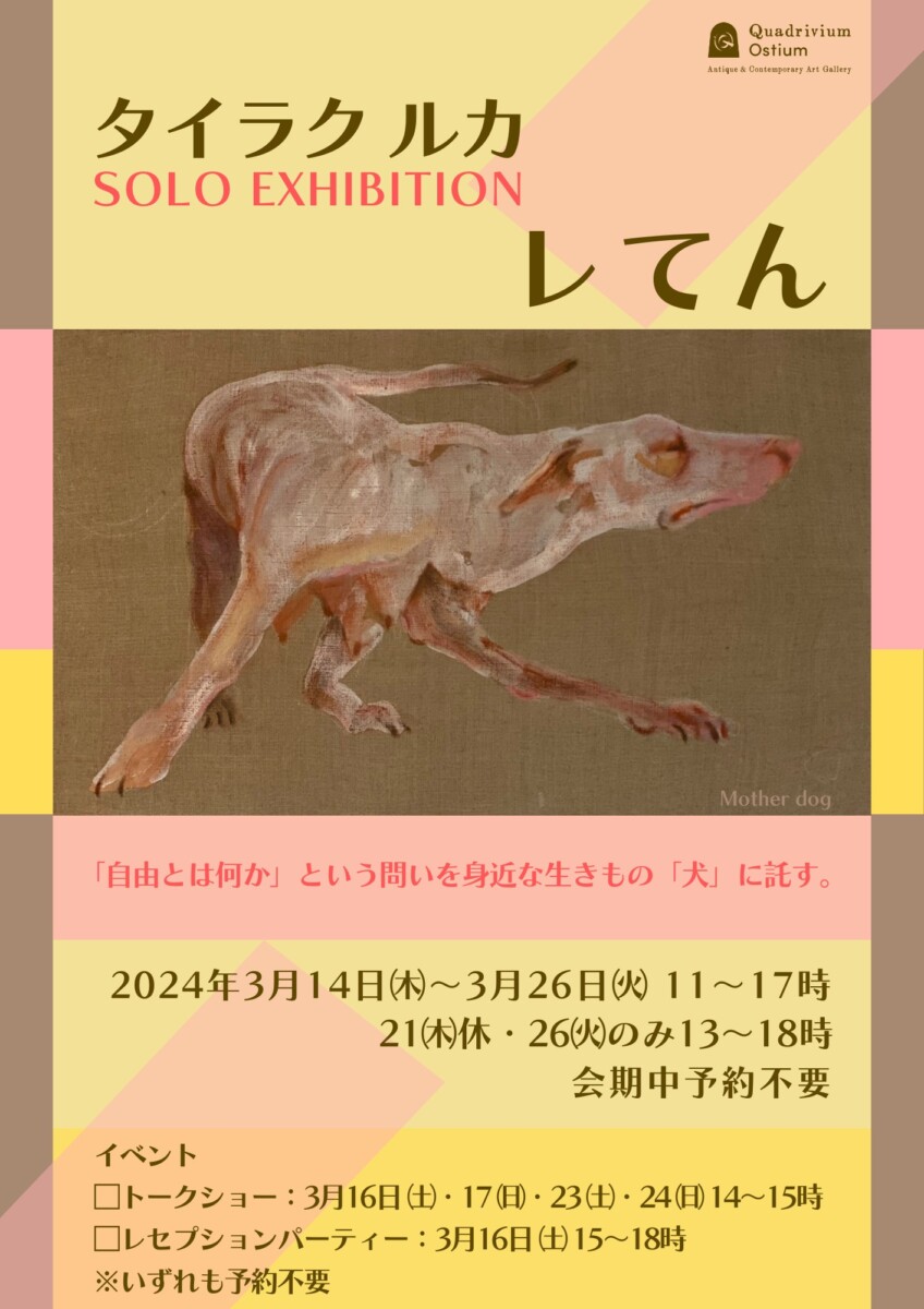 古美術と現代アートのハイブリット企画展を開催しているギャラリー・Quadrivium Ostium(神奈川県鎌倉市、代表:黒田 幸代)は、2024年3月14日(木)より、タイラク ルカによる個展「レてん」を開催いたします。