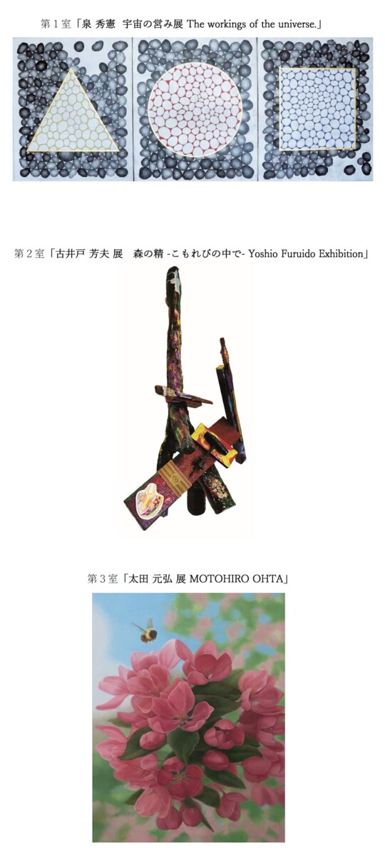 「泉 秀憲 宇宙の営み展 The workings of the universe.」「古井戸 芳夫 展 森の精 -こもれびの中で- Yoshio Furuido Exhibition」 「太田 元弘 展 MOTOHIRO OHTA」Qの美術館 個展同時開催