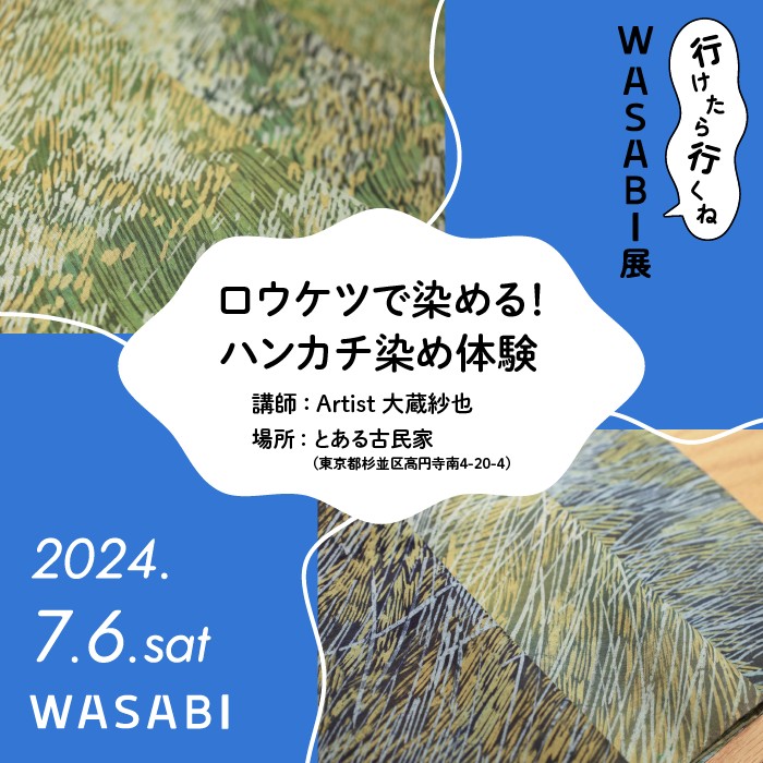 今回は講師にアーティスト・大蔵紗也をお招きし、ワークショップ「ハンカチのロウケツ染め体験」を開催します!