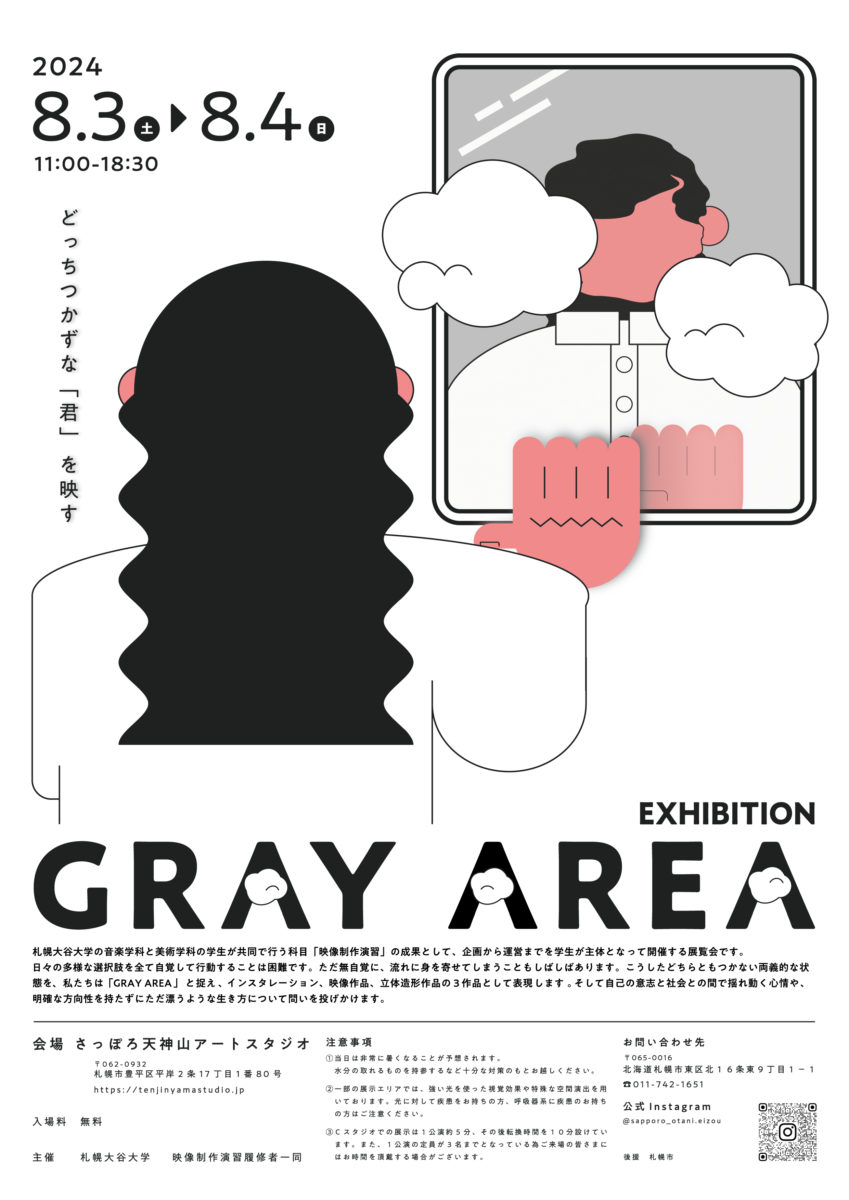 札幌大谷大学の音楽学科と美術学科の学生が共同で行う科目「映像制作演習」の成果として、企画から運営までを学生が主体となって開催する展覧会です。
