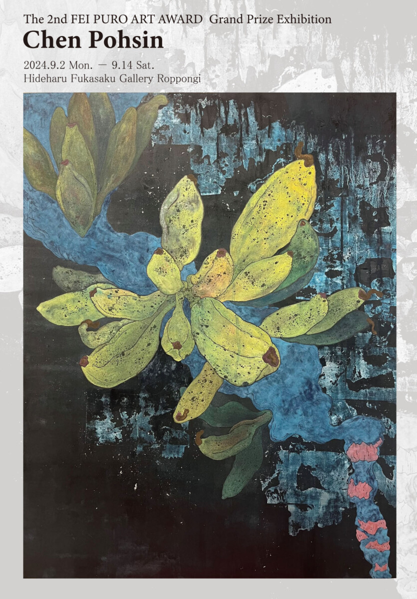 Hideharu Fukasaku Gallery Roppongi では、2023年に系列画廊Hideharu Fukasaku Gallery & Museum (旧FEI ART MUSEUM YOKOHAMA)にて開催された平面作品公募展「第2回 FEI PURO ART AWARD(フェイ ピューロアート アワード)」にて大賞を受賞した陳柏欣(チェン ポーシン)の個展を開催致します。陳の個展は2024年2~3月開催「六本木アートウィーク 陳柏欣個展-南国の事情-」に続く弊廊2回目です。