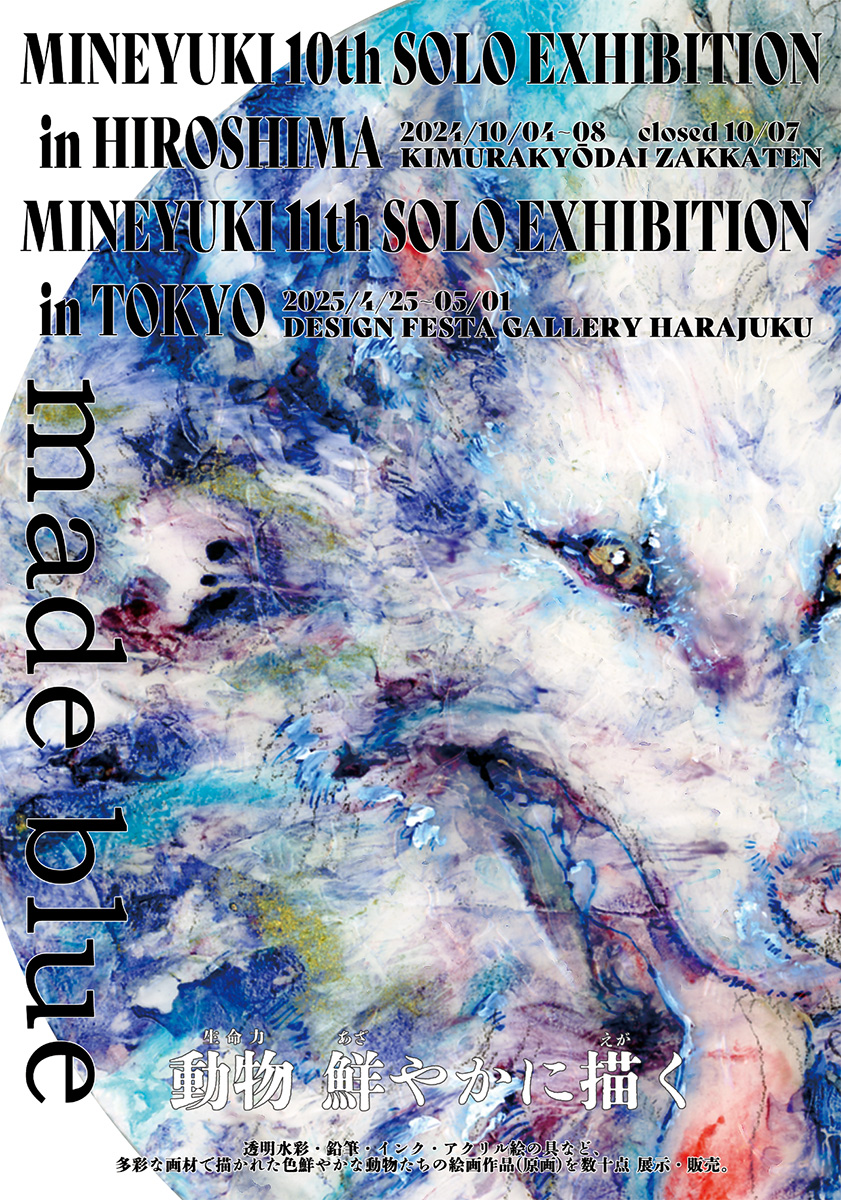 峰雪mineyuki広島個展 made blue展10動物 鮮やかに描く