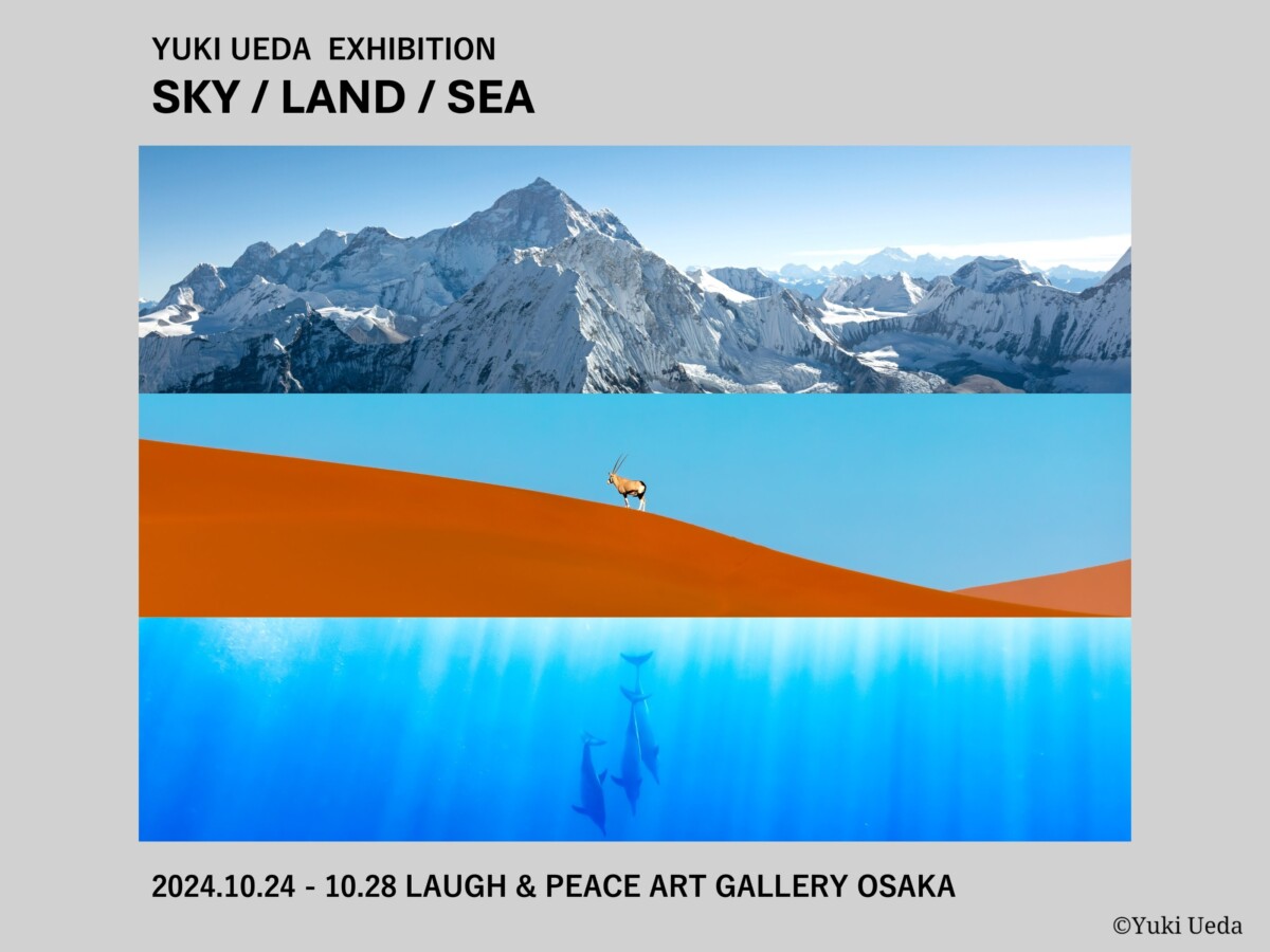 個展タイトルの「SKY/LAND/SEA」は、「SKY」が垂直、「LAND」が水平、「SEA」が水中の風景に由来します。この個