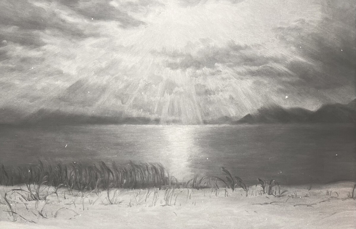 澄み渡る湖面、冴えた風、波の音、眩い光。一人きりで佇んだ冬の日の、淡く愛おしい記憶を描き留めました。(中島玲菜)
