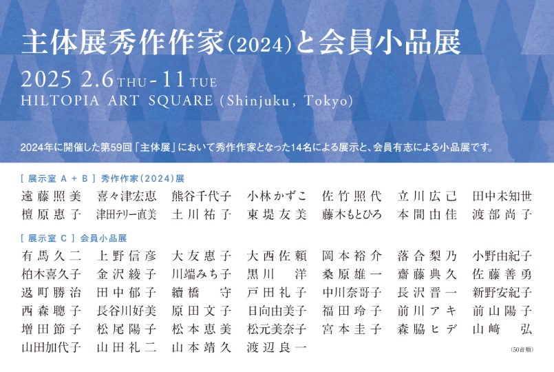 秀作作家となった14名による展示と、会員有志による小品展です。