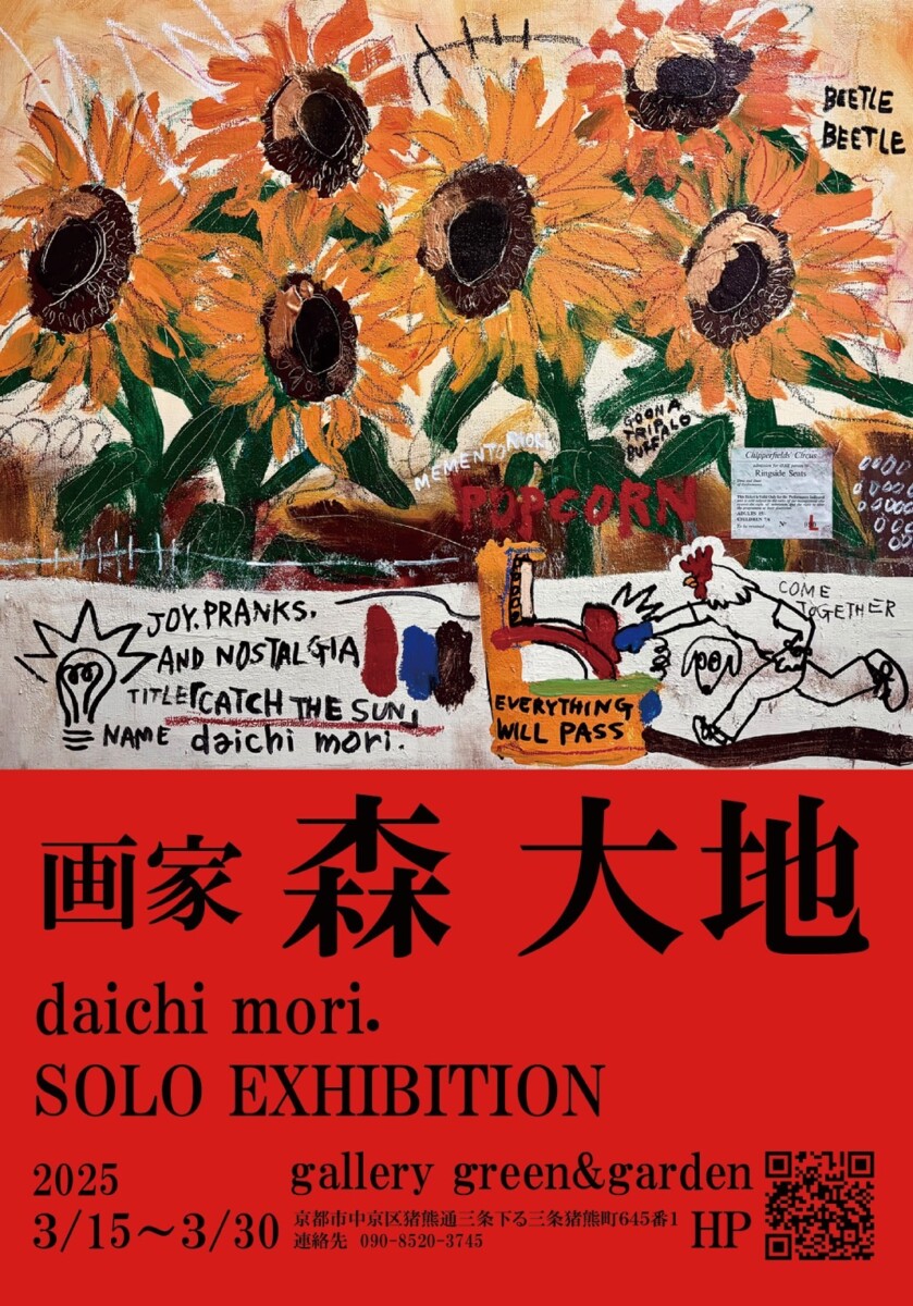 愛知県で活動をしている森大地の関西初個展です。テレビなど様々なメディアに取り上げられ、絵の作家活動だけではなくパフォーマンスアーティストとしても活躍しております。