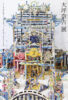 そして、大坪の作品は細部に至る徹底した作り込みが特徴です。大坪が作るのは様々な動物たちが生活を営む架空の建物です。動物をはじめ建物に配される家財道具・装飾品を細部まで丹念に作っていきます。個々のモチーフには大坪の構想した物語があり、それらが集まってさらに大きな物語を構成します。その作品世界はどの位置から見ても尽きることがありません。