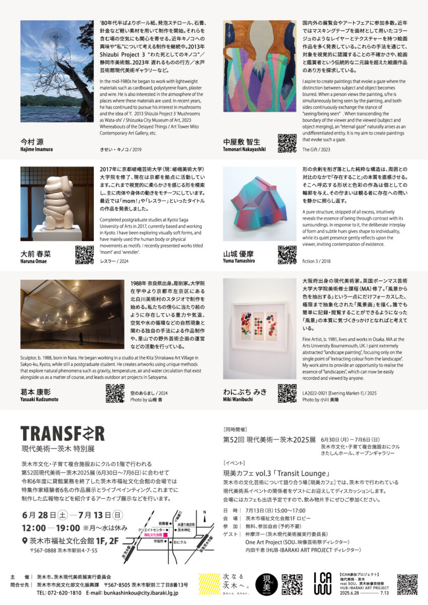 茨木市文化・子育て複合施設おにクルの1階で行われる第52回現代美術ー茨木2025展(6月30日~7月6日)に合わせて令和6年度に貸館業務を終了した茨木市福祉文化会館の会場では特集作家経験者6名の作品展示とライブペインティング、これまでに制作した広報物などを紹介するアーカイブ展示などを行います。