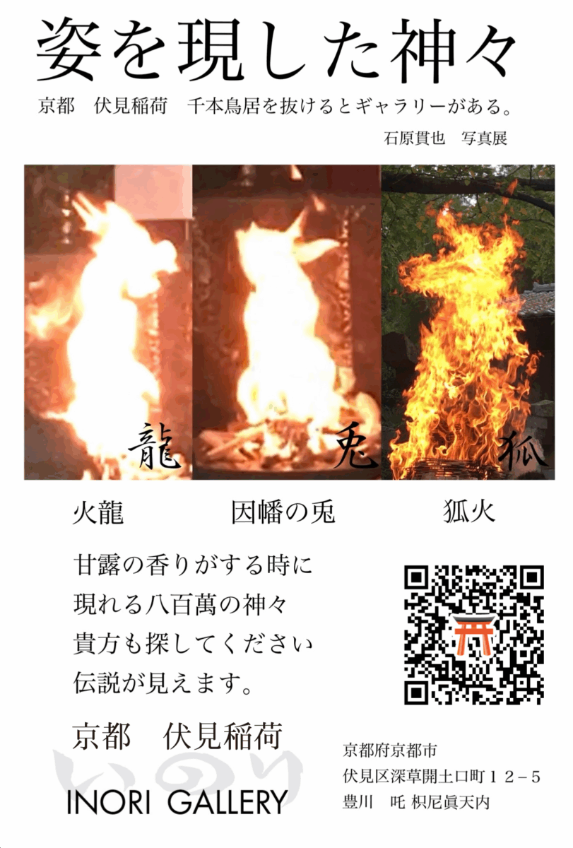 京都 伏見稲荷 千本鳥居を抜けるとギャラリーがある。姿を表した神々に、世界中のお客様が驚き、姿を見ます。見えたと言う事は、真実ですよね。