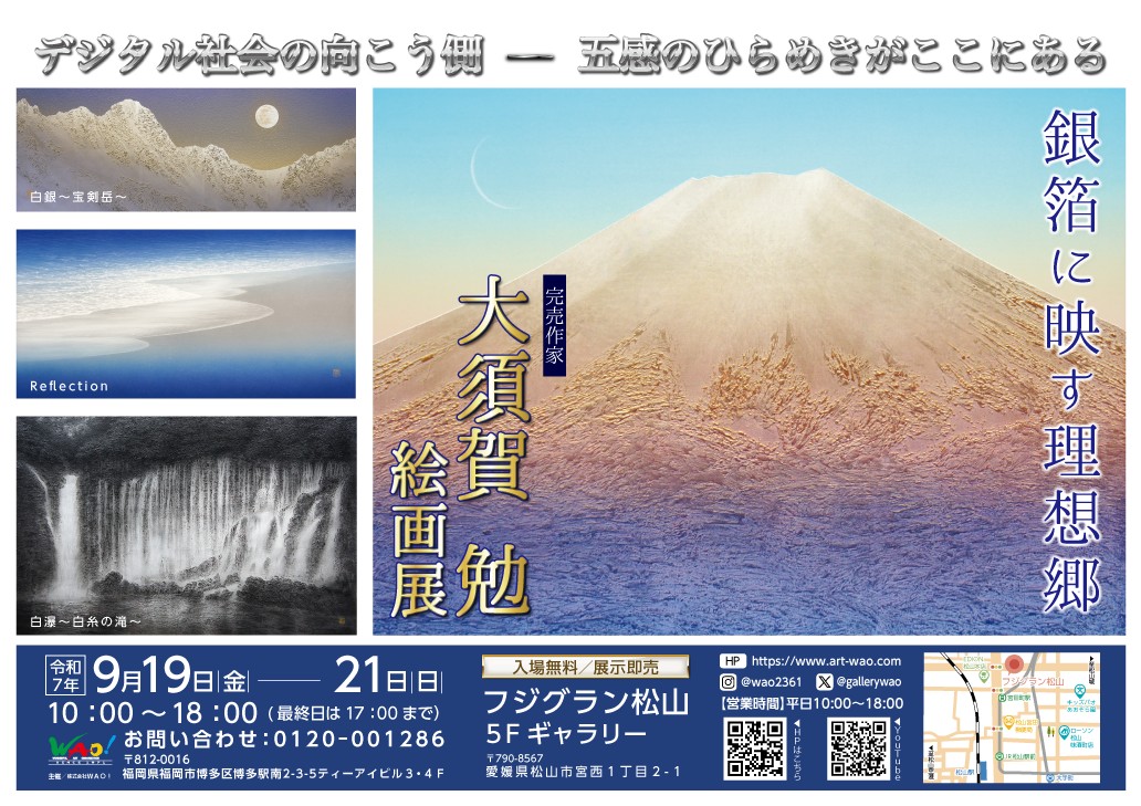 美術家・大須賀勉による描き下ろしの新作原画を中心に構成された特別展です。銀箔を用いた独自の技法によって、風景の静けさや余白を通じて“記憶”と“時間”の流れを表現する作品群が並び、鑑賞者は絵画と深く向き合う静謐な空間を体験できます。展示される原画は、絵具の厚みや筆の流れ、余白の美しさが際立ち、印刷物では味わえない質感と存在感を放っています。会期中は毎日午後2時より作家本人によるトークショーも開催され、制作の背景や作品に込めた思いを直接聞くことができる貴重な機会となっています。初日である9月19日は「一粒万倍日」という吉日でもあり、アートとの出会いにふさわしい縁起の良いスタートとなります。本展は、大須賀勉の“今”に触れ、作品を通じて心と対話する時間を提供する、アートファン必見の展覧会です。