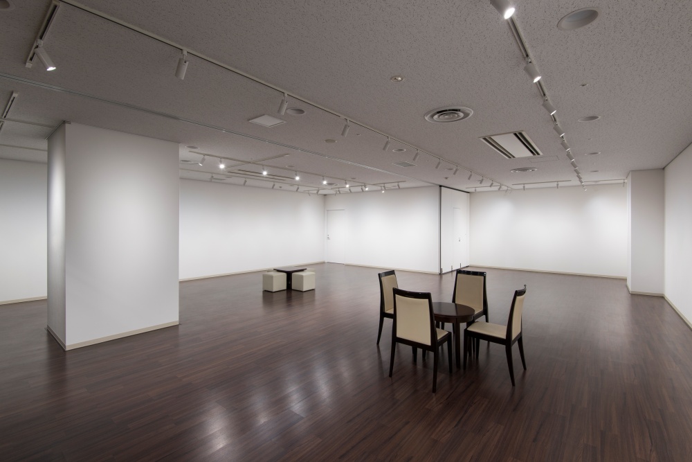 通りに面したガラス張りの外観と、白を基調とした壁、板張りのフロア約45㎡の空間で、絵画、彫刻、美術工芸、写真、書などの作品の展示会場としてご利用いただけるほか、レンタルスペースなどとしてもご利用いただけます。