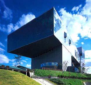 大分市美術館は、上野の森の自然環境に調和した落ち着いた雰囲気の建物で、常設展示棟と企画展示棟に分かれています。