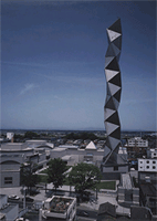 この都市広場をとり囲む形で、東側には、水戸市制100 周年(明治22年(1889年)市制施行)を記念する高さ100 メートルの塔が、西側にはエントランスホールをはさんでACM 劇場、コンサートホールATM 、北側には現代美術ギャラリーが配置されています。