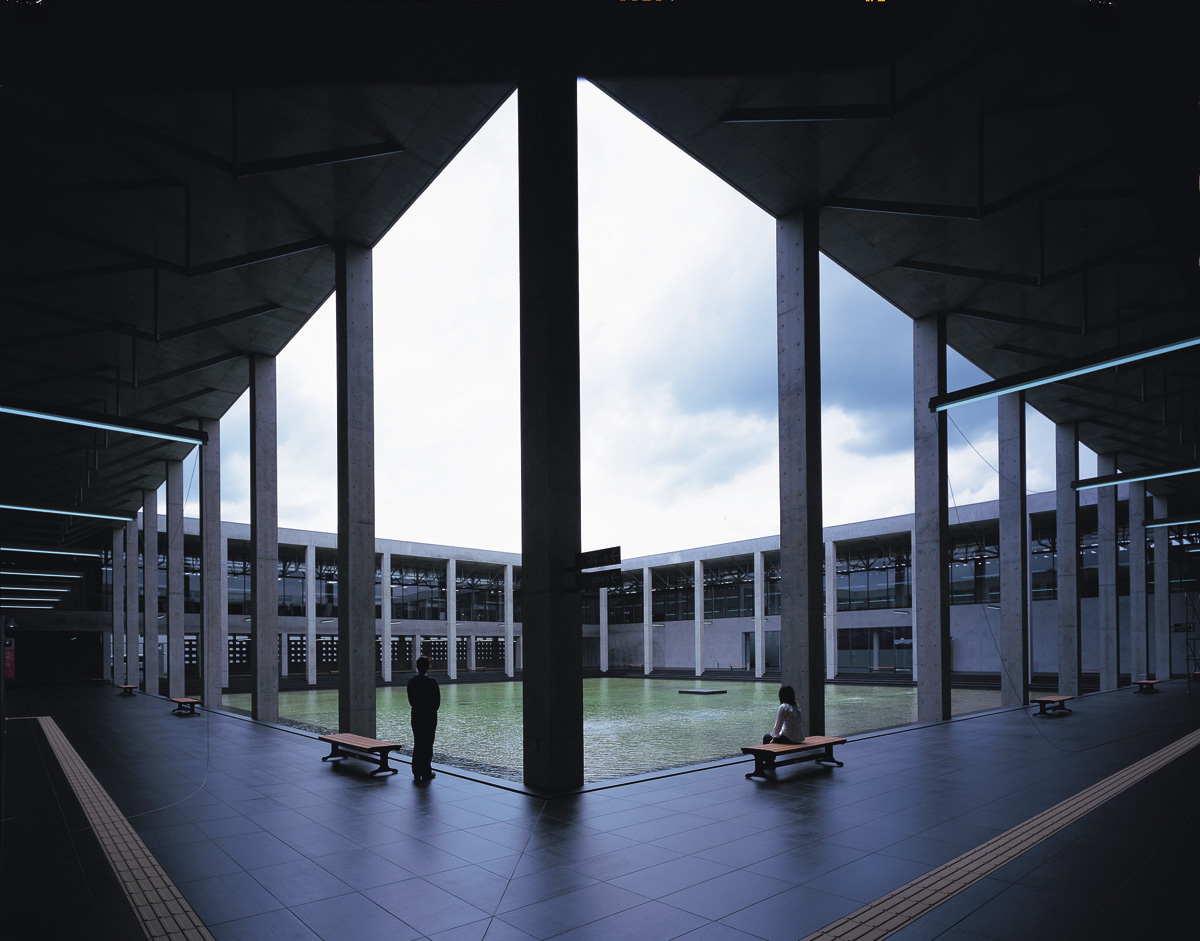 「大地の芸術祭の里」の中心的施設であり、作品をたどって里山を巡る旅の出発となる場所。館の中央には大きな池と空が広がり、建築自体が自然を内包している。設計を手掛けた、京都駅ビルや梅田スカイビルの設計などで知られる建築家・原広司は、オアシスに隊商たちのテントが集う「節季市」をイメージしたという。