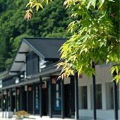十和田湖、西の玄関口「黒石温泉郷」の豊かな自然環境に親しみ触れあいながら、津軽の伝統工芸・伝統芸能を一度に体験できる広域交流の観光拠点施設です。建造物は、黒石市中町通りに残る「こみせ」をイメージし、津軽の伝統工芸を直接見て・触れて・体験できる7つの工房を配しています。また、津軽民謡や黒石の風土・歴史資料の展示はもとより、津軽圏域の情報が検索できる「展示資料室」を設け、全国に情報を発信する機能を持たせています。