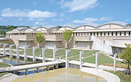 屋上庭園をはじめ敷地内の随所に配した緑、館内に自然光をふんだんに採り入れるための天窓を多く設けたことが建物の特徴です。 -