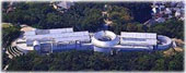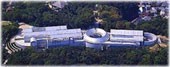 建築設計は黒川紀章氏。古代ヨーロッパの広場を思わせるアプローチプラザ、外観の三角屋根は日本の蔵を思わせます。建物の素材は地面から高くなるに従って芬髑R石、磨き石、タイル、アルミ、と現代的な素材へと軽やかに変わっていきます。 -
