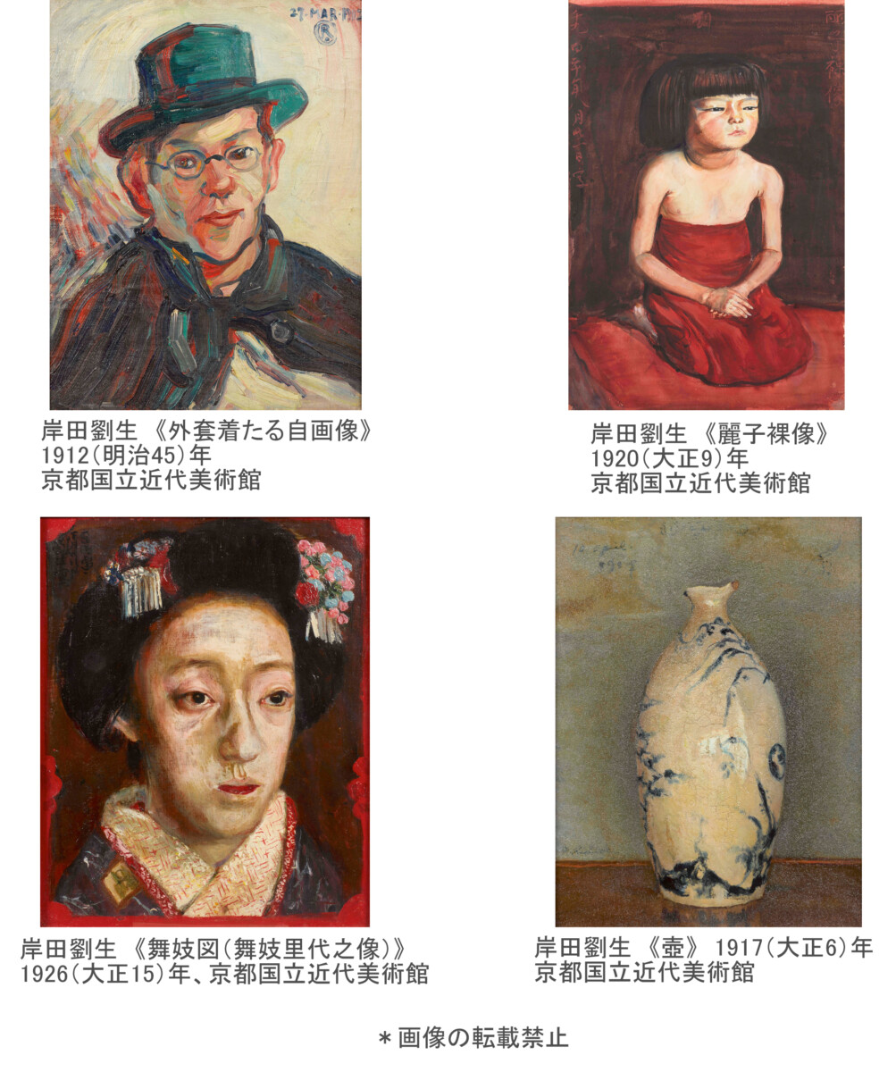 このたびの新収蔵を記念して開催する本展覧会では、当館所蔵の岸田劉生作品を全てまとめて公開するとともに、《外套着たる自画像》や《舞妓図(舞妓里代之像)》、《大連星ヶ浦風景》等の旧蔵者だった森村義行と、その弟で《壜と林檎と茶碗》の旧蔵者であった松方三郎や、劉生の最大の支援者だった芝川照吉にも着目し、劉生の顕彰におけるこうしたコレクションの役割をも振り返ります。