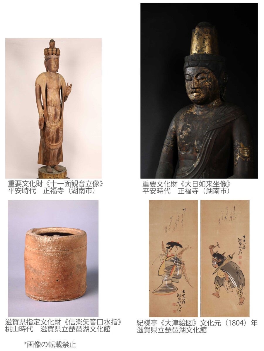 本展では滋賀県立琵琶湖文化館がお預かりしているこれら貴重な文化財の中から、湖南市の名刹正福寺の仏像を中心として、豊かな文化を育んできた滋賀の情景をあらわした作品を滋賀県立美術館のコレクションとともに展示します。