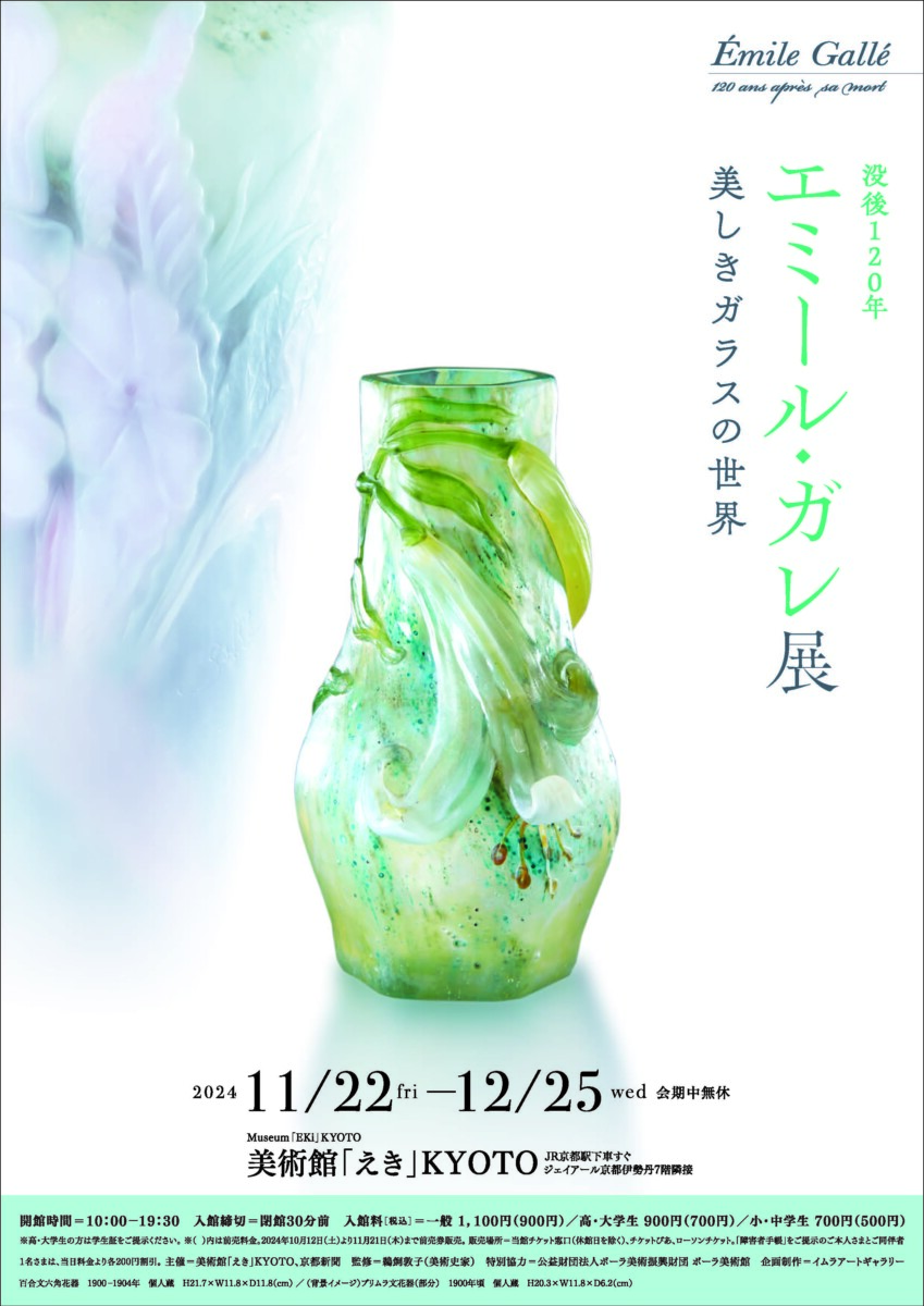 本展は、没後120年となるガレの偉業を、約70点の美しいガラス作品で振り返ります。