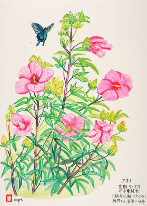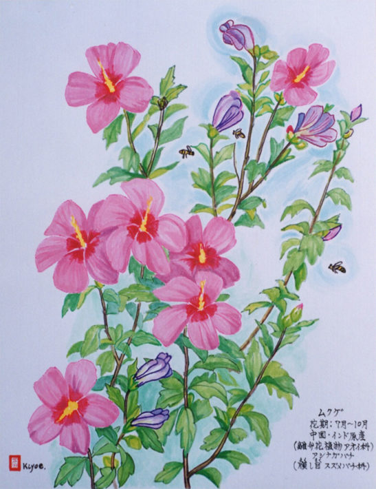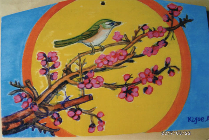 長野市丹波島の自宅の紅梅を写生 1999年4月